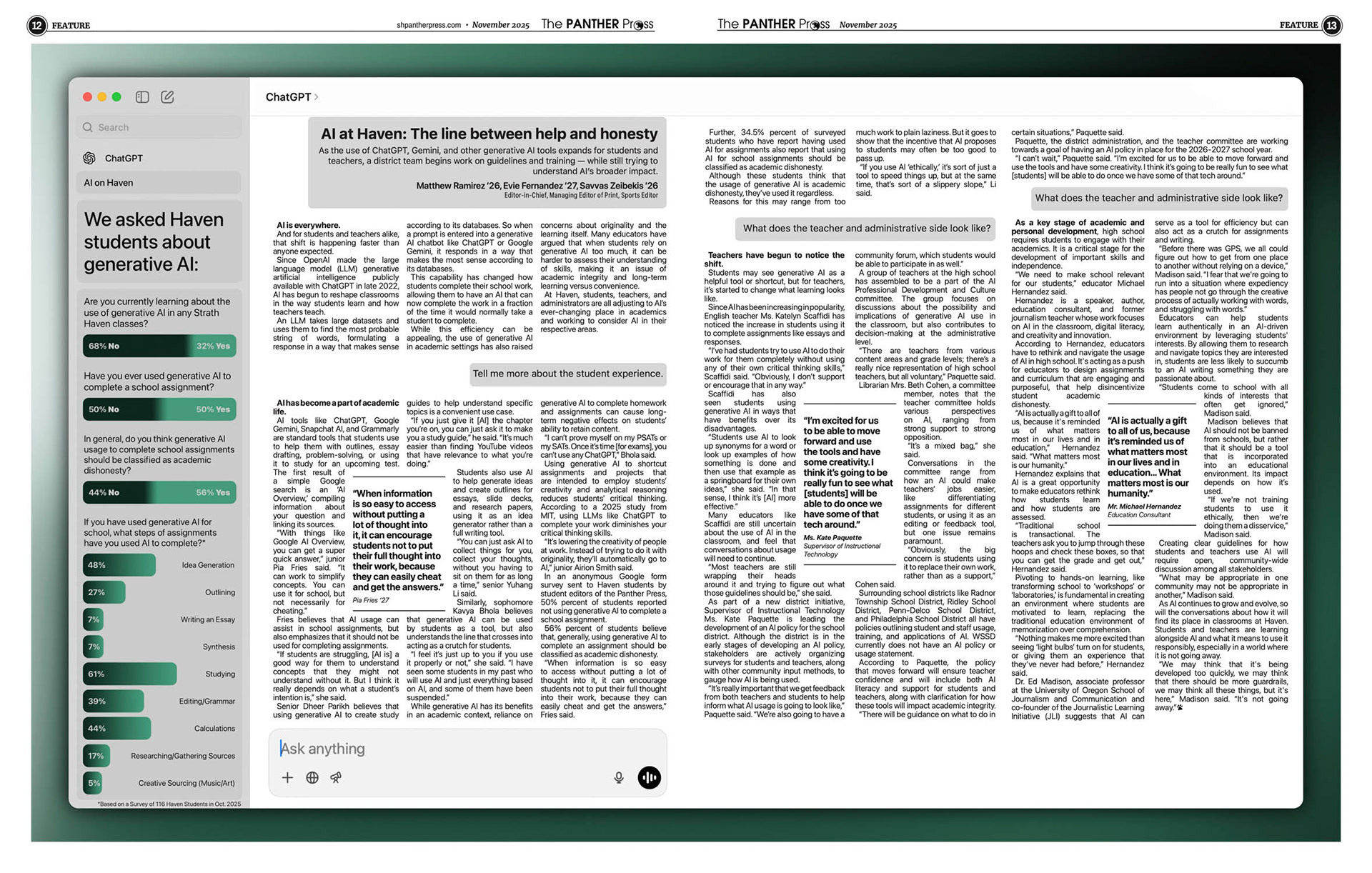 I serve as Lead Designer and Social Media Editor for The Panther Press at Strath Haven High School, an award-winning newspaper recognized at the national level. I design impactful print and digital layouts and I shape the paper’s visual identity, contributing to a prestigious, student-led extracurricular program.